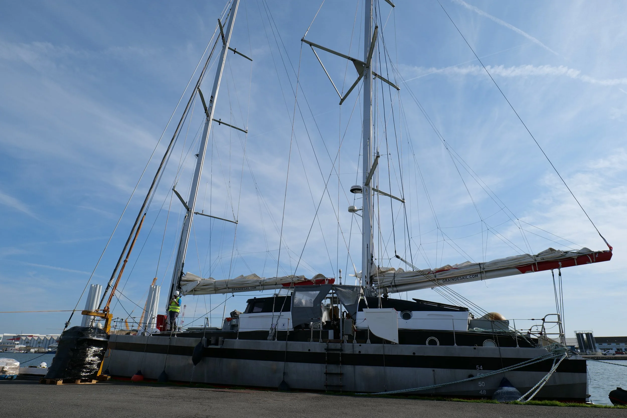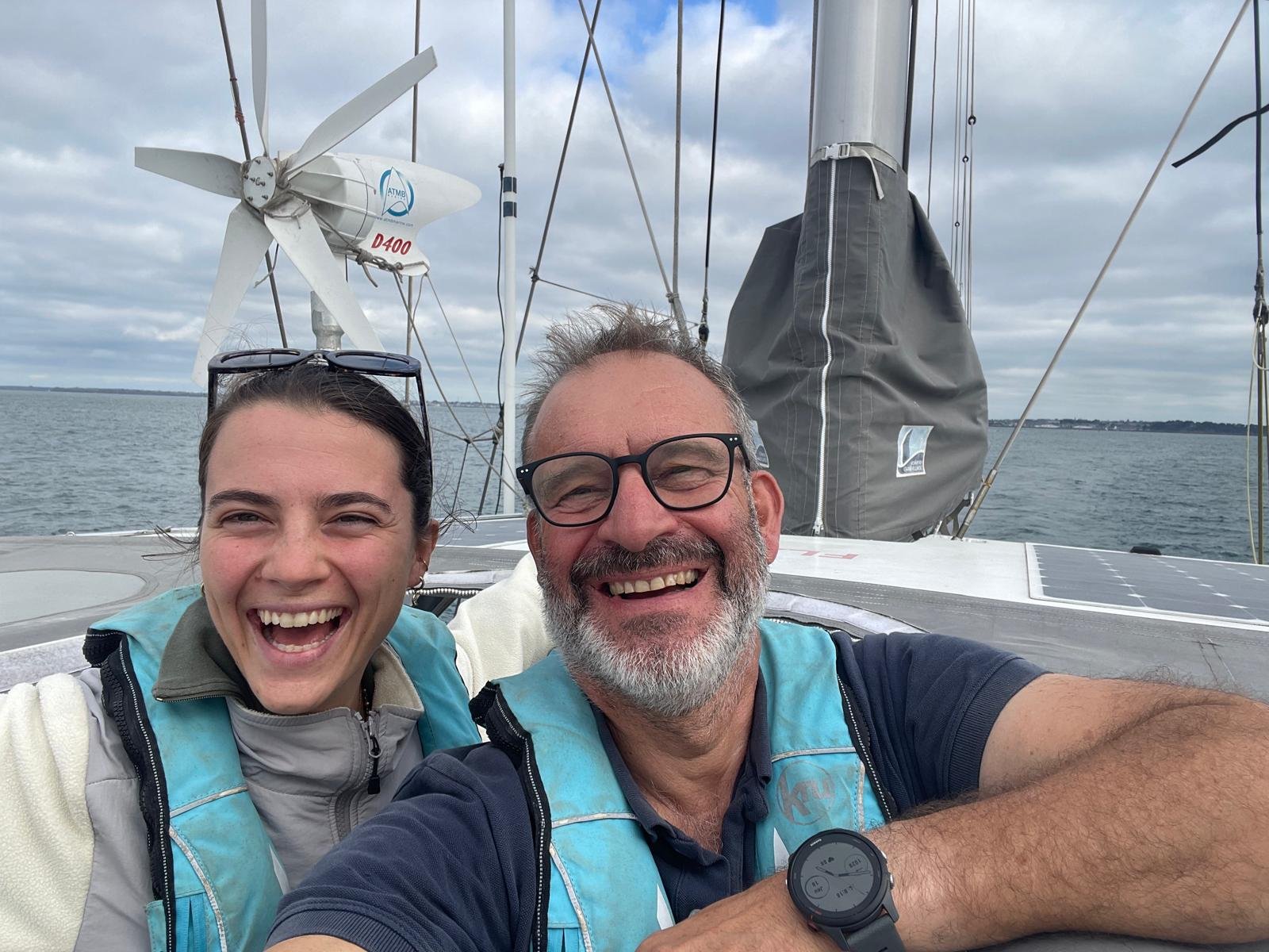 D’un côté, Marc, le père, capitaine de la marine marchande, avec plus de 30 ans d’expérience dans la Marine Nationale, une vie consacrée à la navigation, au commandement, à la transmission et au monde maritime. Après avoir dirigé des écoles d’ingénieurs et côtoyé de près les réalités du transport maritime, il choisit de revenir à l’essentiel : la mer, les routes commerciales, et l’envie d’agir concrètement pour accompagner l’essor du transport de marchandises à la voile. Il exerce également comme skipper professionnel.